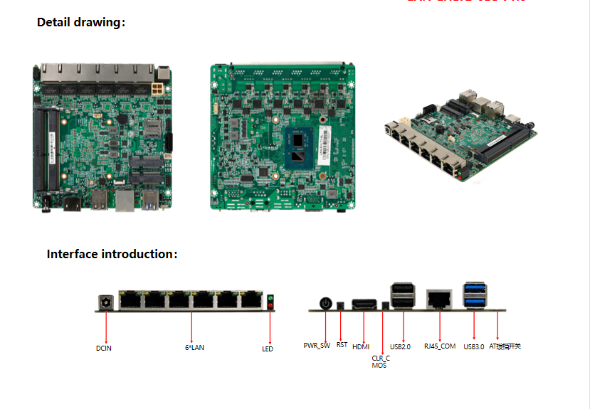 | Network card | On board 6 * Intel I226-V network card (transmission rate 2.5G) | ||