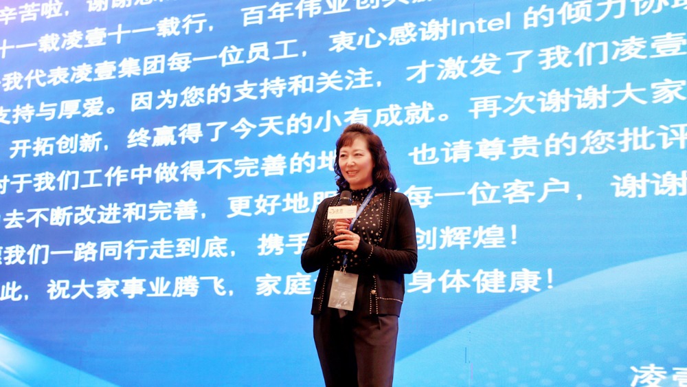 答謝環(huán)節(jié),凌壹公司副總經(jīng)理向梅女士發(fā)表演講,感謝在場客戶長期以來對(duì)凌壹科技的信任與支持,一路同行走到底,攜手共進(jìn)共創(chuàng)輝煌!